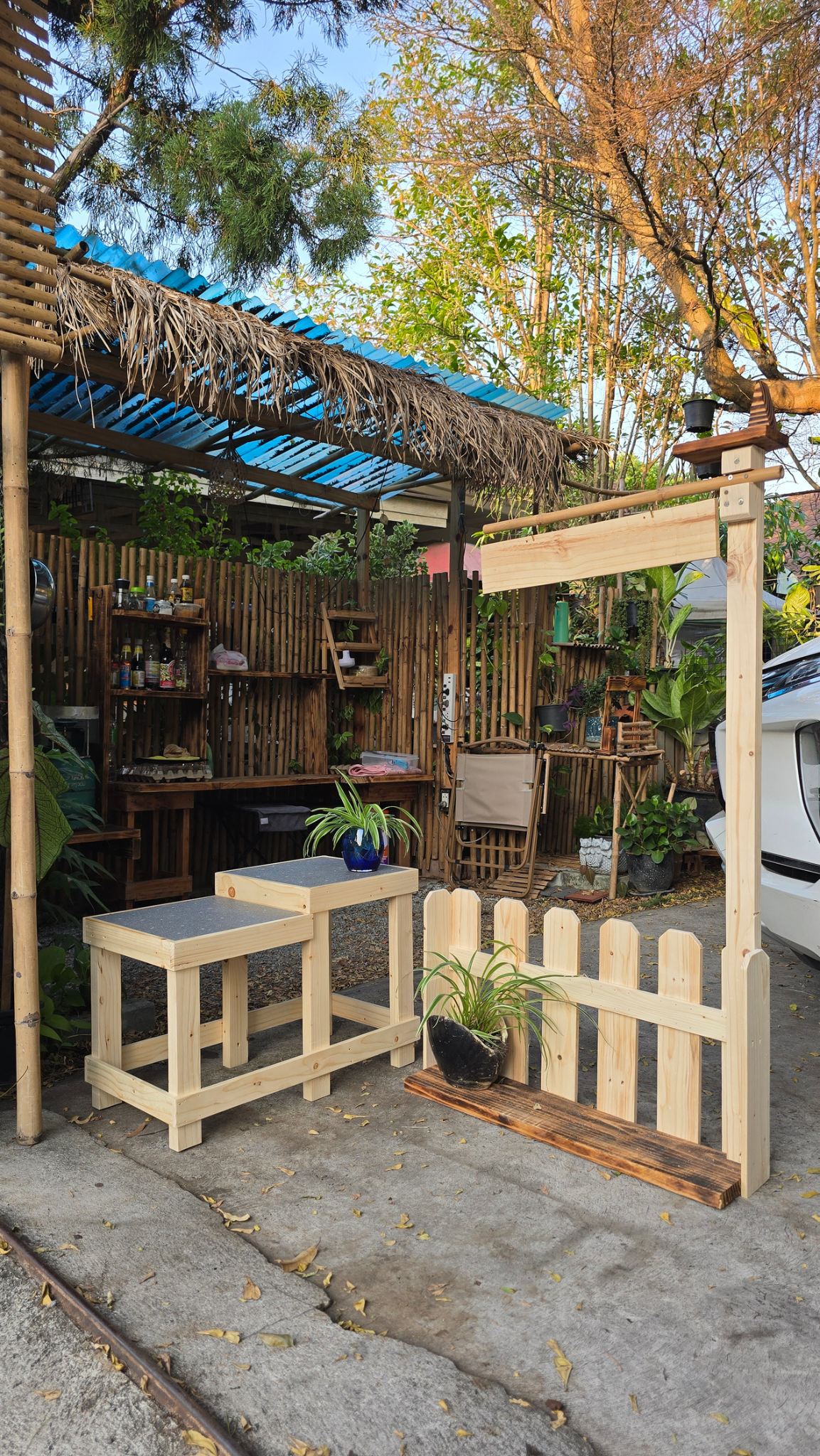 ในระบบนิเวศแห่งความสุขของเรา นอกจากต้นไม้ที่เขียวขจีและสายน้ำที่ใสสะอาดแล้ว อีกหนึ่งหัวใจสำคัญที่ผมภาคภูมิใจและอยากแบ่งปันคือ "งานไม้ DIY" ครับ ทุกชิ้นที่กัลยาณมิตรเห็นในสวน ไม่ว่าจะเป็นรั้วไม้สีนวล หรือป้ายบอกทางไม้สไตล์มินิมอล ล้วนเกิดขึ้นจากความรักในงานช่างและการลงมือทำด้วยตัวเองทุกขั้นตอน
